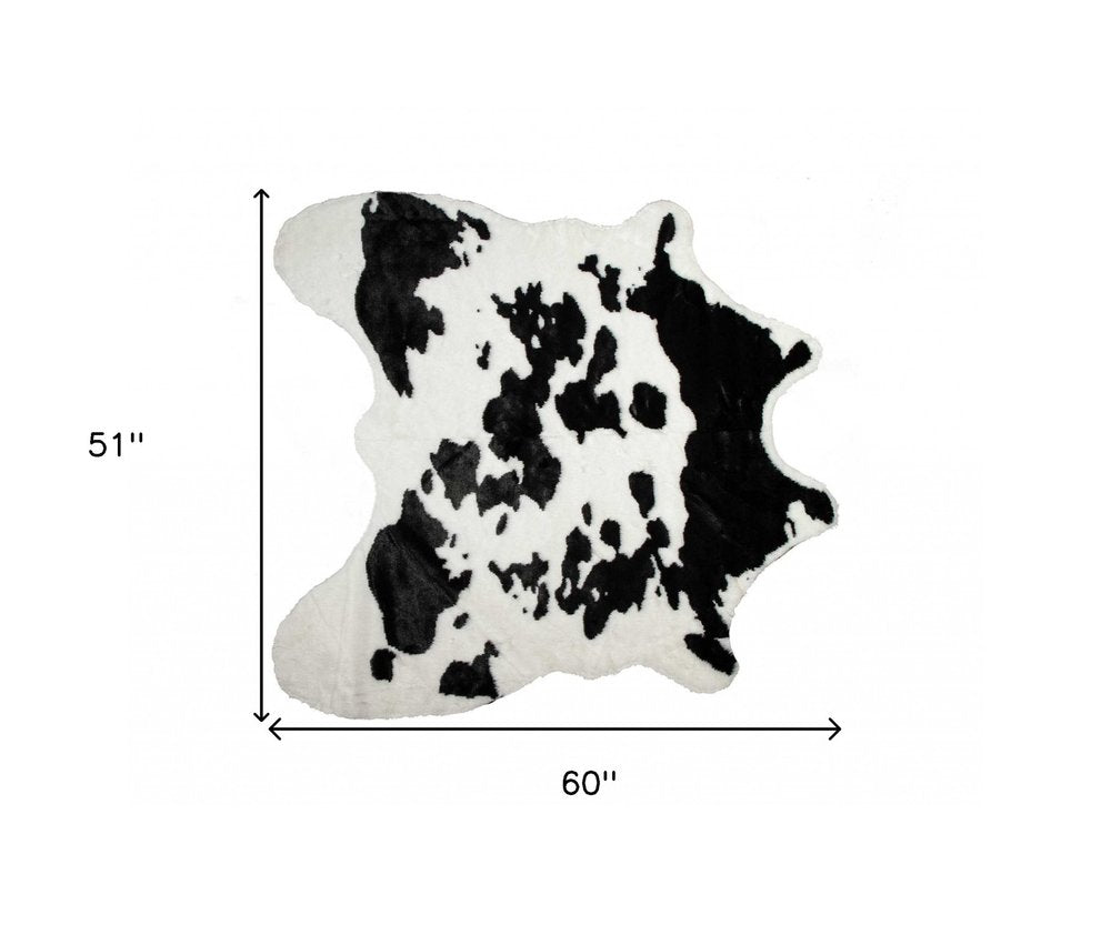 4' x 5' Brown and White Cowhide Print Hand Knotted Area Rug