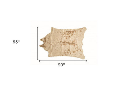 4' X 5' Off White And Silver Faux Cowhide Animal Print Shag Hand Knotted Washable Area Rug