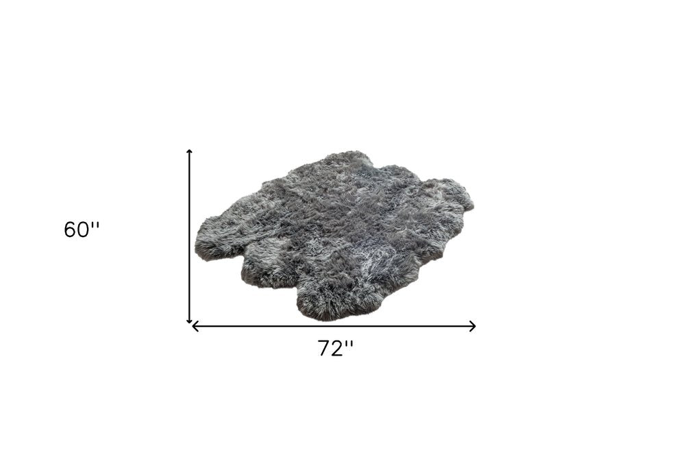 5' X 6' Black Wool Sheepskin Handmade Area Rug