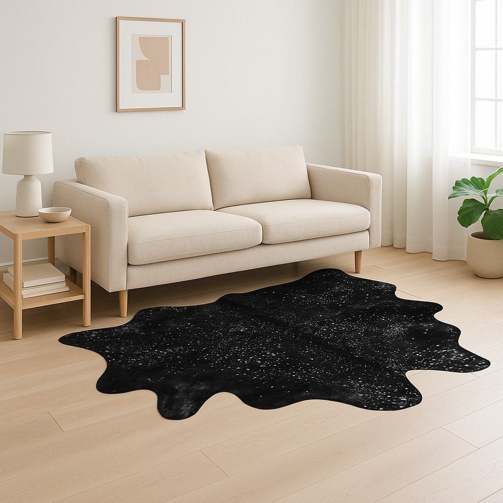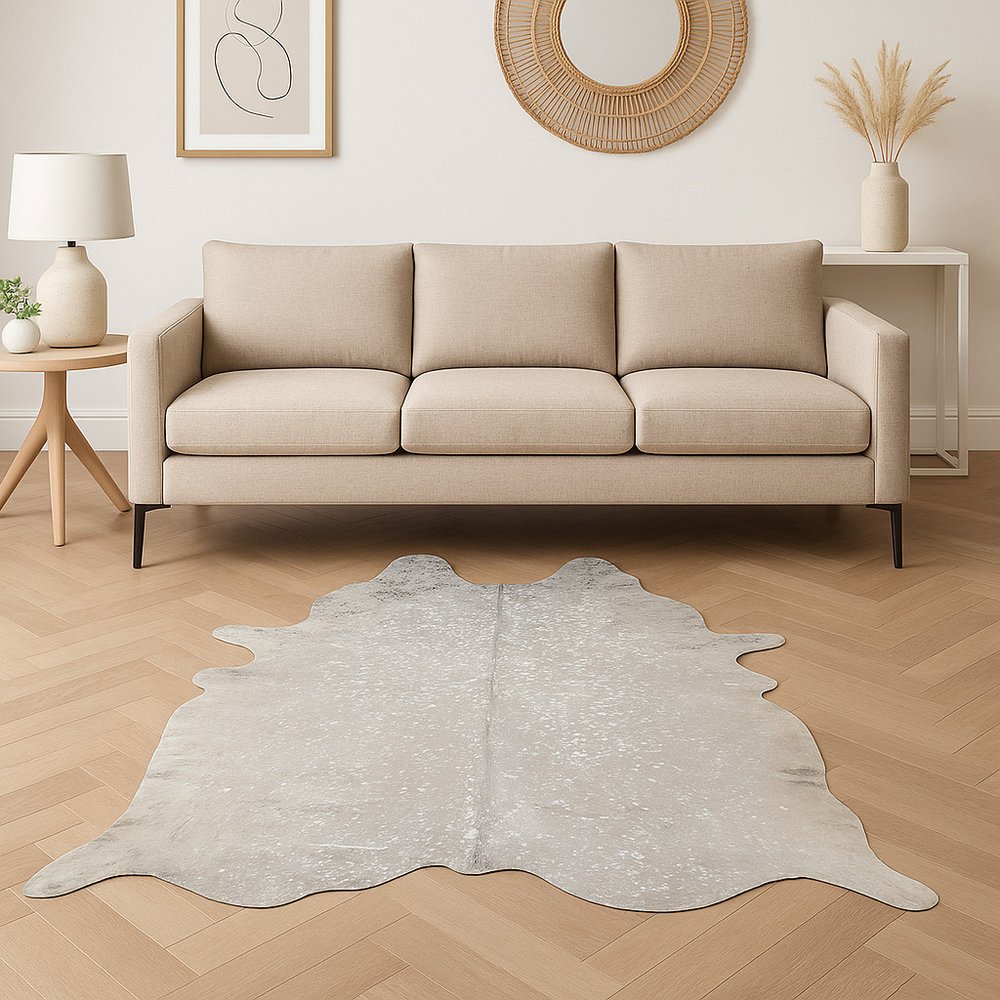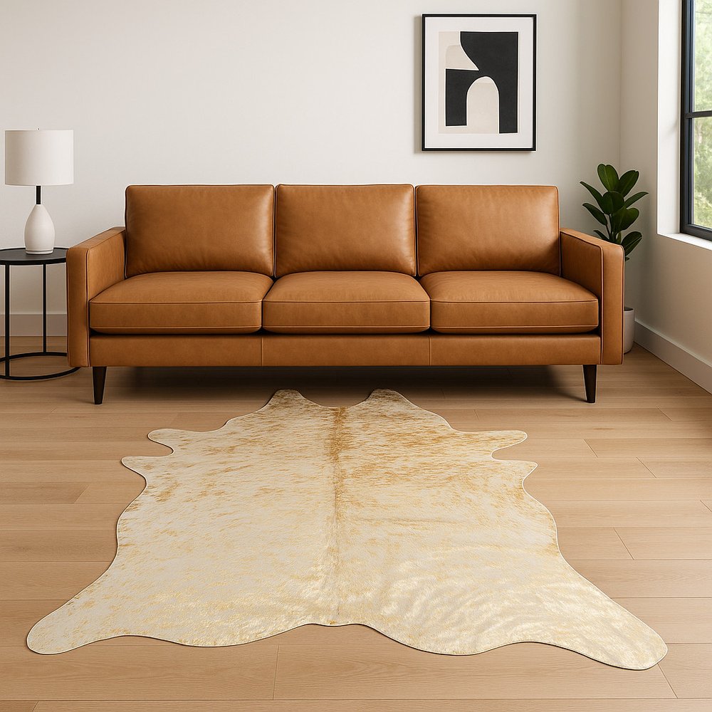 Bring warmth, sophistication, and a touch of nature into your home with this 6' x 7' Natural Cowhide Print Area Rug. Expertly crafted from premium cowhide fibers, this contemporary rug boasts a stunning print and ultra-soft texture—perfect for making a bold style statement or seamlessly blending with your existing décor. Durable and luxurious, it’s designed to hide imperfections, reduce noise, and elevate any room’s ambiance.