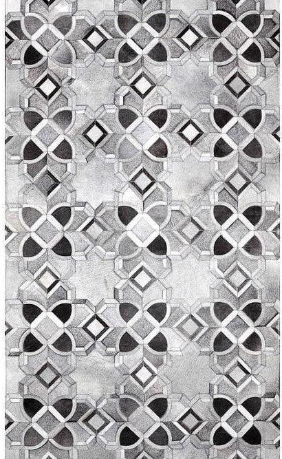 Our exceptional cowhide patchwork area rug collection is the heart and soul of the emerging interior design trend and the Star Pattern Grey Black White Cowhide Rug is one of our bestsellers. With a subtle color palette in neutral colors? grey, black and white, a landscape of texture blends solid cowhide for shine. This grey, black and white patchwork area rug has a profound impact in the feel of your room. Light and airy, the all-white background with grey and black star pattern is subtle and peaceful. Accessorizing your floors with white rugs brings warmth and visual interest to your room. Simple graphics make this rug quite compatible with the modern color schemes.